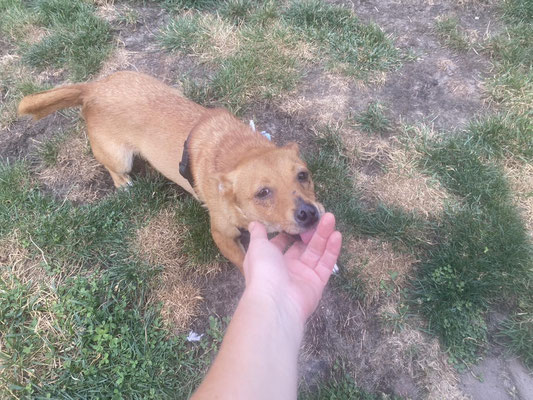 Ze is erg lief, aanhankelijk en sociaal met vreemde mensen (maar wel een beetje voorzichtig) en ook voor mannen is ze niet bang. Met andere honden gaat ze heel goed om. Groot, klein, lomp, Bella vindt ze allemaal even leuk en gezellig. Ze speelt enorm graag met de andere honden van het opvanggezin en tegelijk heeft ze er veel steun aan. Daarom plaatsen wij Bella alleen bij een andere speelse hond. Liefst niet te groot. We weten niet of ze met katten of kinderen kan, dus plaatsen we haar niet bij katten of kinderen onder de 12 jaar.