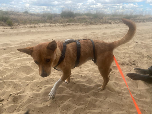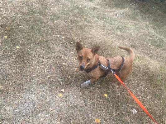 Wandelen vindt ze ontzettend leuk. Ze loopt al goed mee aan de lijn en trekt niet.