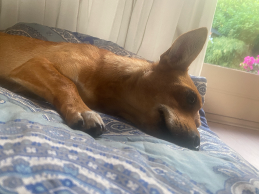 Bella kan zonder problemen even alleen thuis blijven. Ze gaat dan gewoon rustig liggen slapen. Ze blaft of piept niet. Ze sloopt niets en is vanaf het begin helemaal zindelijk.